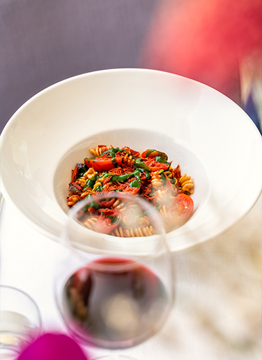 Our kitchen follows the rhythm of the seasons, using carefully selected ingredients and offering dishes that range from Mediterranean traditions to vegetarian options.