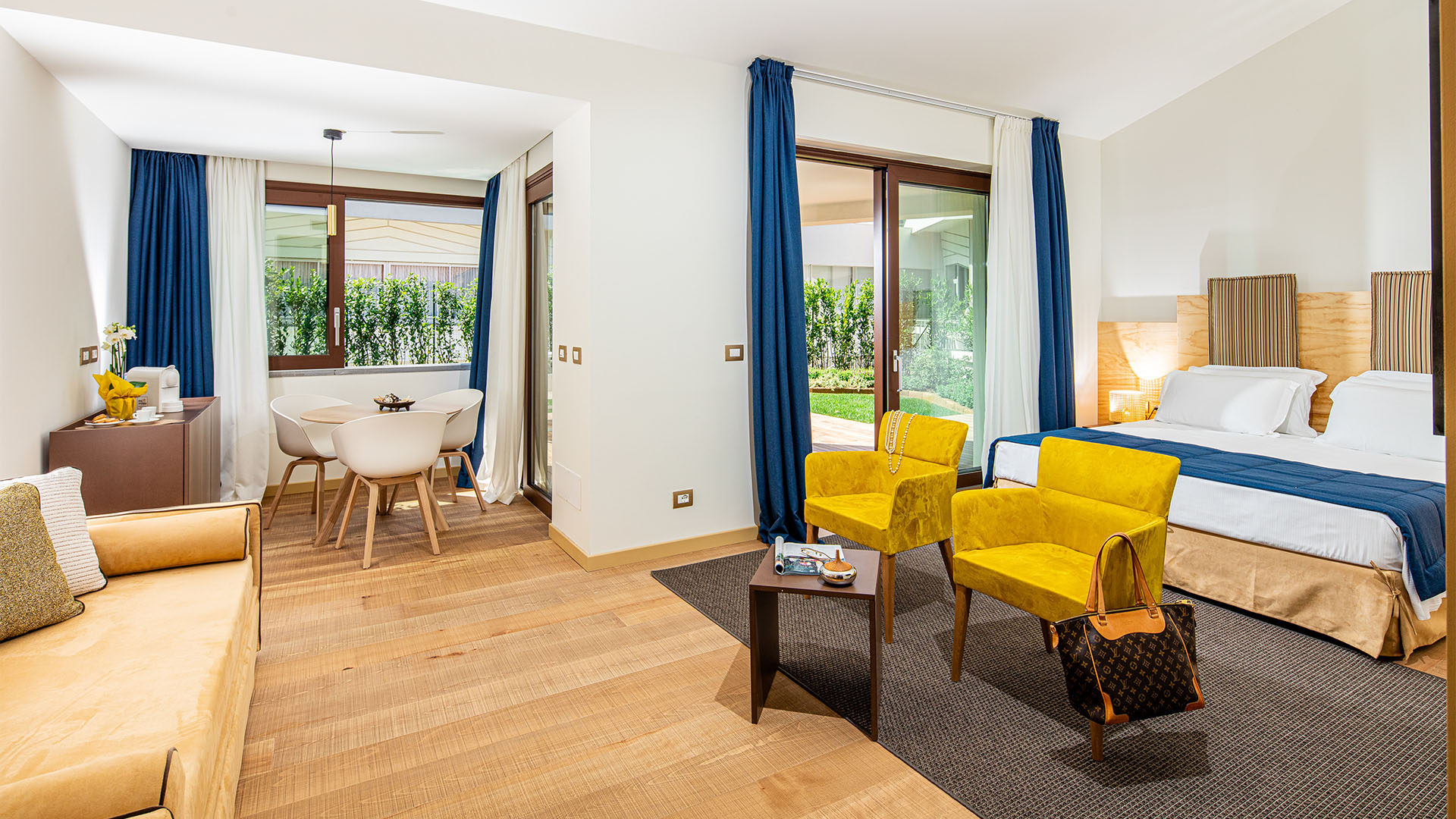 Solo sette. Le Garden Suites sono un rifugio esclusivo per chi cerca privacy, bellezza, libertà e momenti di autentico relax. Affacciate sul verde del parco, con terrazze dotate di vasca idromassaggio ed alcuni con giardino privato recintato, sono ideali anche per accogliere i vostri amici a quattro zampe. Offrono uno spazio intimo dove natura e comfort si incontrano in perfetta armonia.