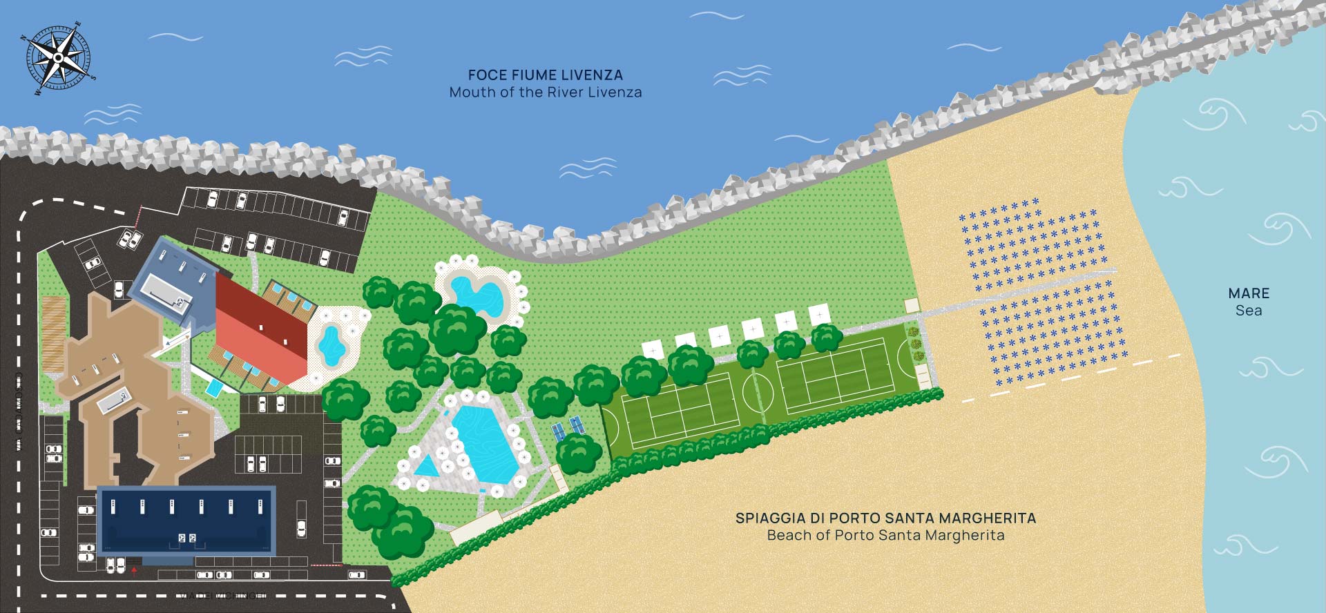 Affacciato sulla darsena e le tranquille acque del fiume, il Ristorante Terrazza Hemingway celebra il legame tra terra, mare e racconto. Ispirato alla presenza di Ernest Hemingway nella laguna di Caorle, questo spazio accoglie con eleganza e sobrietà, tra luci naturali e trasparenze leggere. La cucina si fa narrazione: ingredienti locali, profumi mediterranei e sapori autentici danno vita a piatti che parlano di un territorio plurisecolare. Un invito a lasciarsi trasportare — con lo sguardo, come con le storie — là dove l’acqua incontra il cielo.